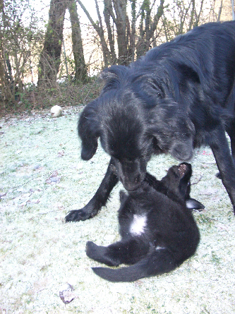 Die Kleinen entwickeln sich prächtig und das frostige Wetter ist Klasse um im Garten zu toben. Aber auch unsere Haus wird in Gruppen erkundet, unter den erziehenden Augen von Anima, Barney und Xabia.